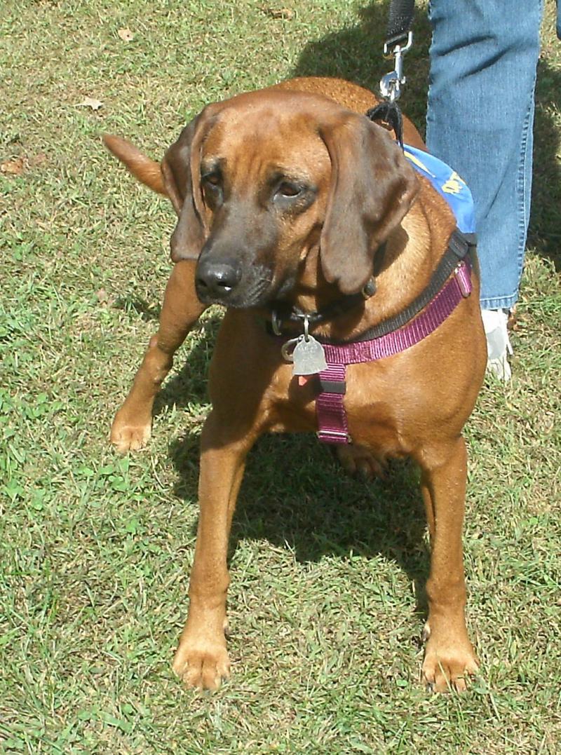 LUCILLE is a happy and loving female redbone coonhound, rescued by Buddy Rescue Foundation in NC when she was thrown from a pickup truck in front of an animal control officer on patrol! Lucille was emaciated, bruised and heartworm positive, so we set out to treat her heartworm and heal her and put weight on her and she is now heartworm negative and a very healthy weight and available for adoption. Lucille is spayed, up-to-date on all vaccines and is microchipped. Lucille is friendly with all dogs and cats and loves all people and children. Lucille would make a great family pet where she will get plenty of exercise and love and attention. If you'd like to meet Lucille, please call 201-264-6968 or email barbara@buddyrescue.org.